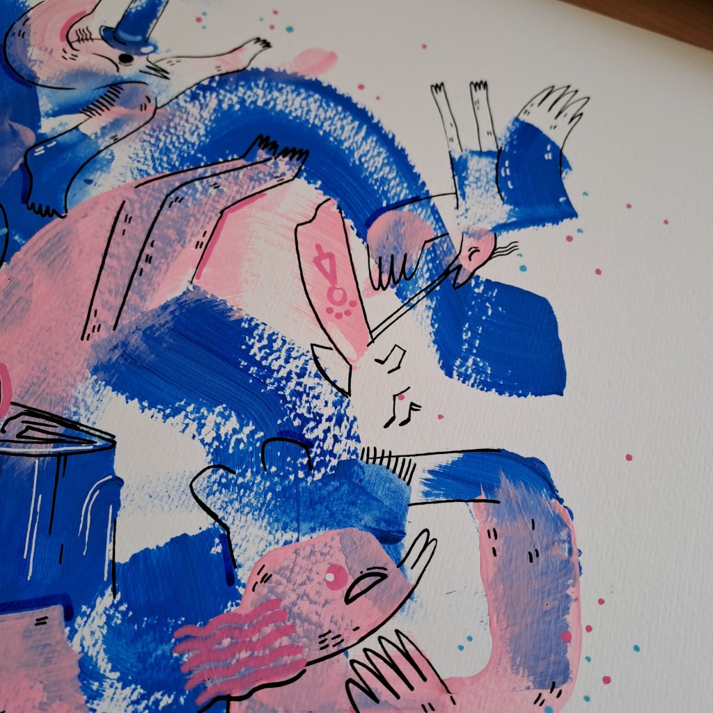 “the orchestra” Portfolio – Acrylics, ink and pens on paper – A3 Share with your friends! Share on Facebook (Opens in new window) Facebook Share on X (Opens in new window) X Share on Tumblr (Opens in new window) Tumblr Share on Pinterest (Opens in new window) Pinterest Like Loading... Related