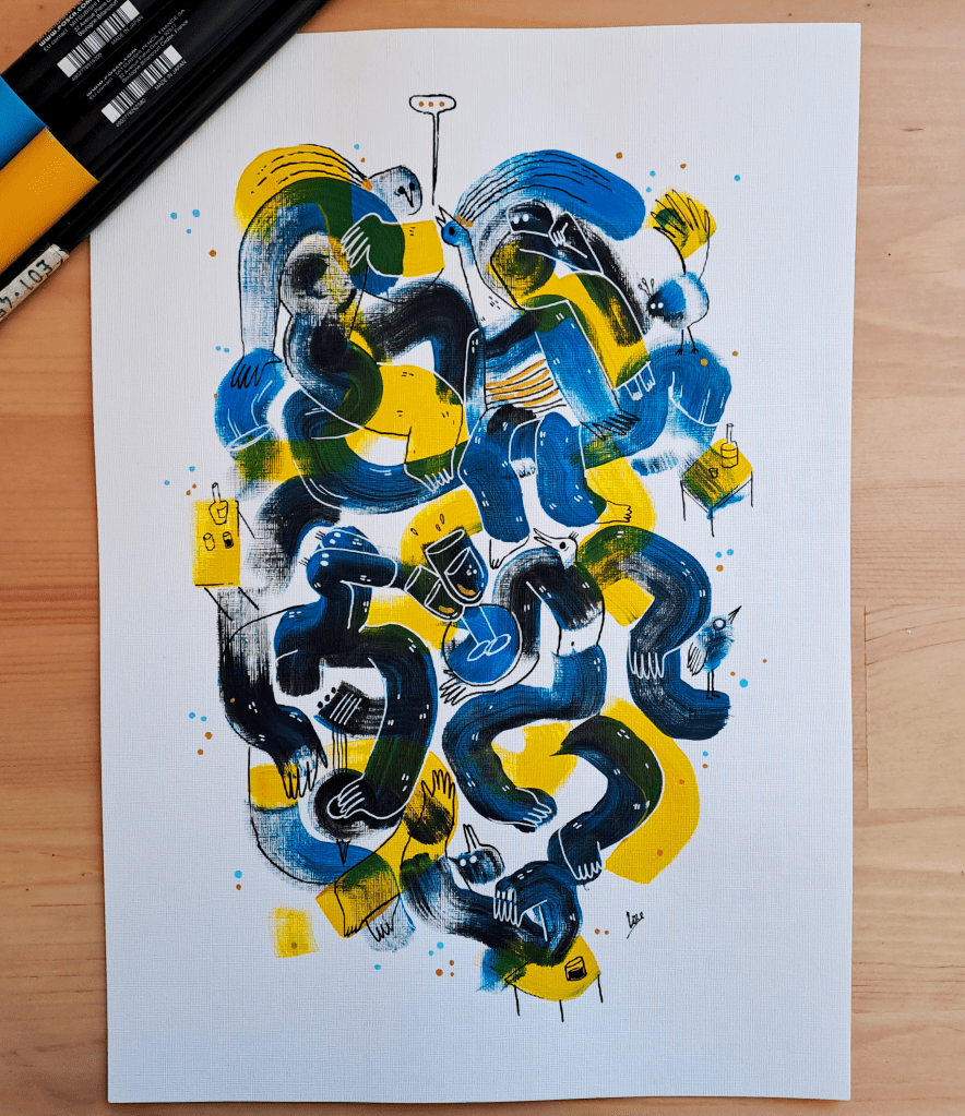 “el Orador” Portfolio – Acrylics, pens and ink on lino paper – A4 (Sold) Share with your friends! Share on Facebook (Opens in new window) Facebook Share on X (Opens in new window) X Share on Tumblr (Opens in new window) Tumblr Share on Pinterest (Opens in new window) Pinterest Like Loading... Related